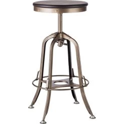 Rustic Adjustable Iron & Wood Bar Stool In Nickel