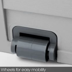 It comes equipped with small wheels & handles so you can drag it all over the garden as you work, and its adjustable lid can be propped open at many different angles. It also boasts a hole for padlocks, so it can be left at community gardens or other communal outdoor spaces without any fear of theft of the items inside. This feature also works well for families with young children, making sure that little hands can’t reach sharp and dangerous garden tools.