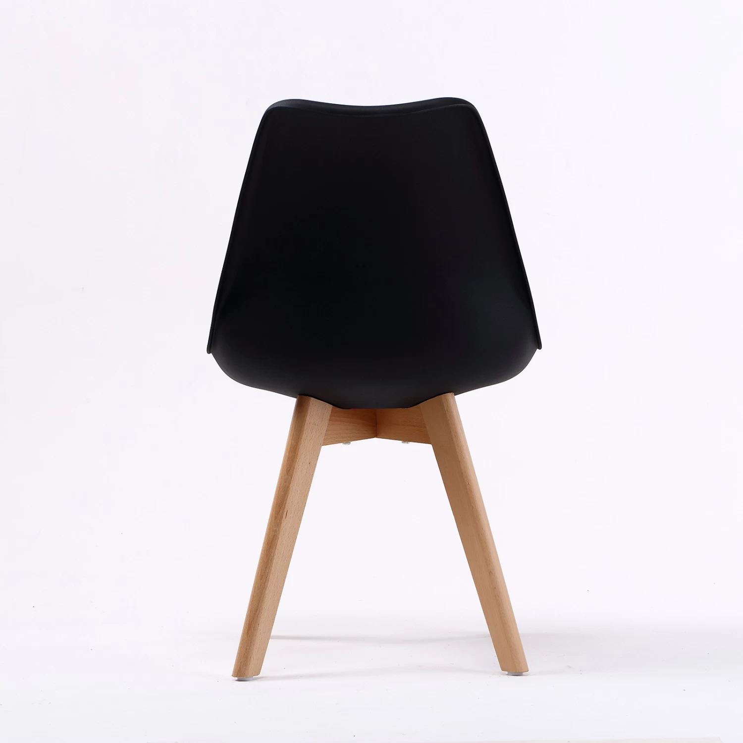 The chair seat is made of high-quality polypropylene plastic with an extra PU leather padded cushion, providing maximum durability and comfort without sacrificing its original aesthetic design. Besides, the beech wooden legs will add extra strength to the chair, giving it an extra stability.