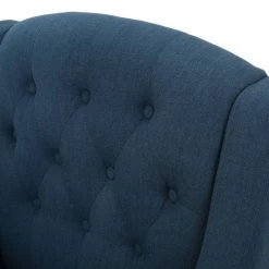 - Canberra Linen Fabric Tufted Armchair in Dark Blue