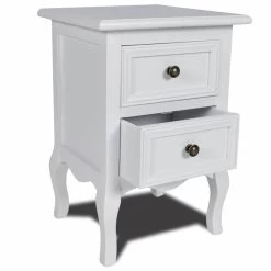 This bedside table is white washed in a traditional style. Its classic style looks heavy with an heirloom type quality. It is made of solid strong beech wood timber. It is the perfect accompaniment to a provincial style bedroom setting.