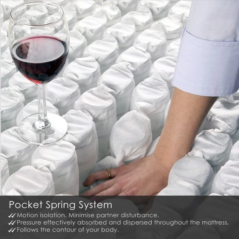 - Independent pocket spring which follows the contour of your body, maintaining spine in its natural posture, providing the deep down correct support.