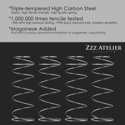 - Innovative ZzzCoil pocket spring system. Triple tempered alloy coil, better elasticity then many of its counterparts, anti-rust, anti-corrosion and extremely durable.
