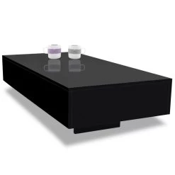 This rectangular coffee table in high gloss black has a modern, elegant look and feel, and will complement the furniture in your home. It can be used as a coffee table or as a side table.