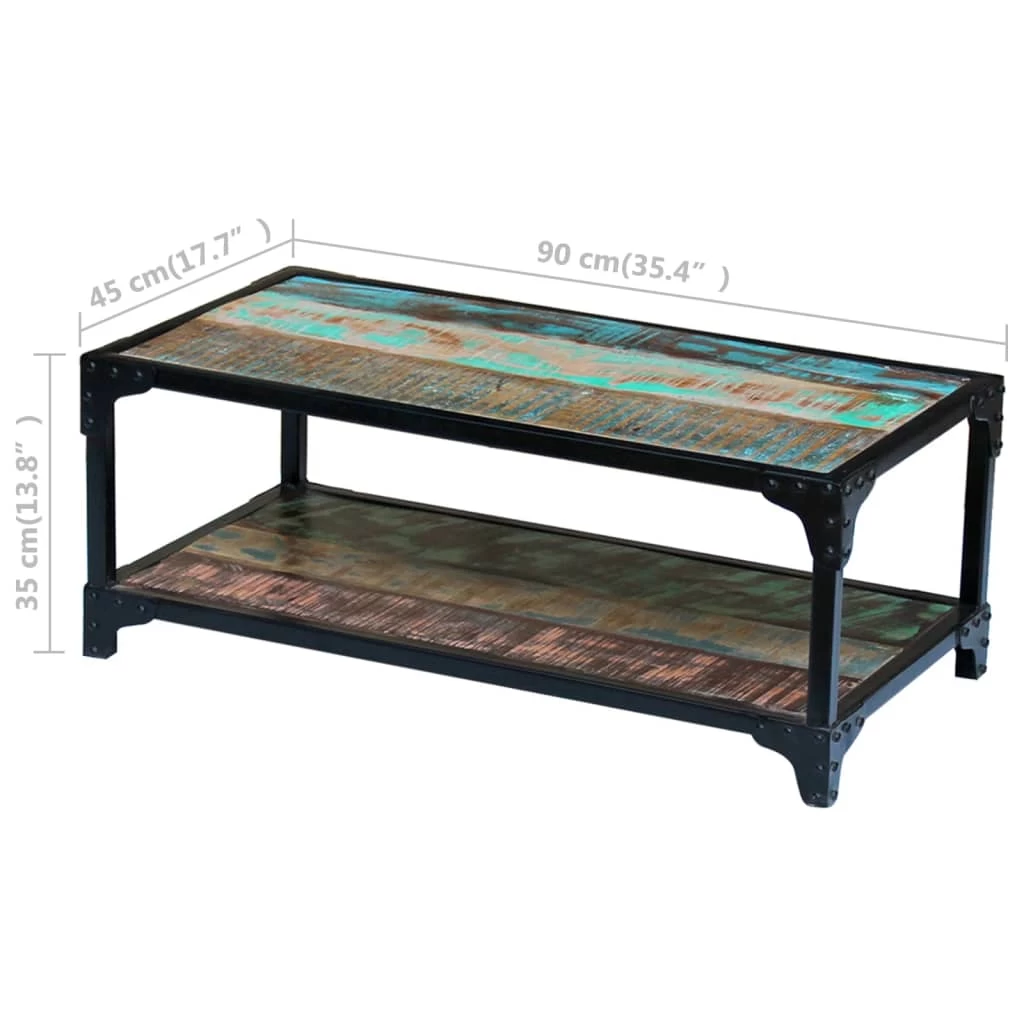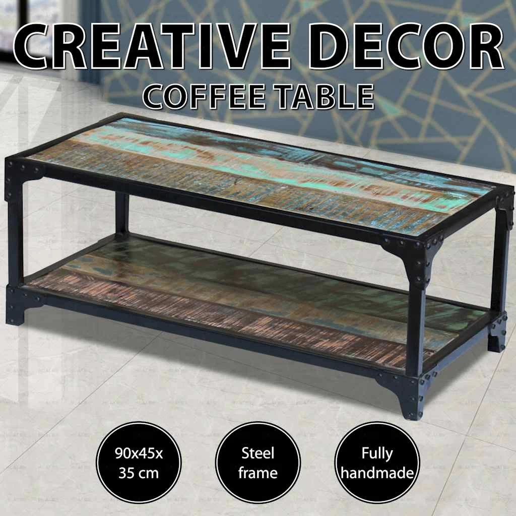 This vintage-style wooden coffee table, made of solid reclaimed wood, will make a timeless addition to your home. Thanks to the strong steel frame, the coffee table is very steady and durable. The tabletop provides a stable and secure surface on which you can place your drinks, a fruit basket or vase or other decorative items. The shelf on the bottom provides ample space for storing multimedia appliances, books, magazines, and other items you want to keep within reach. The coffee table can also be used as a couch table, living room table, side table, etc.