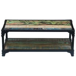 The coffee table is made of recycled wood, which means every piece of furniture is unique and slightly different from the next. Furniture made of reclaimed wood has the characteristics of different woods, like teakwood, acacia, mango wood, saal wood, etc. Reclaimed wood is solid, stable, durable, and beautiful. Signs of wear and visible grain structure give each piece its own history and unique look.