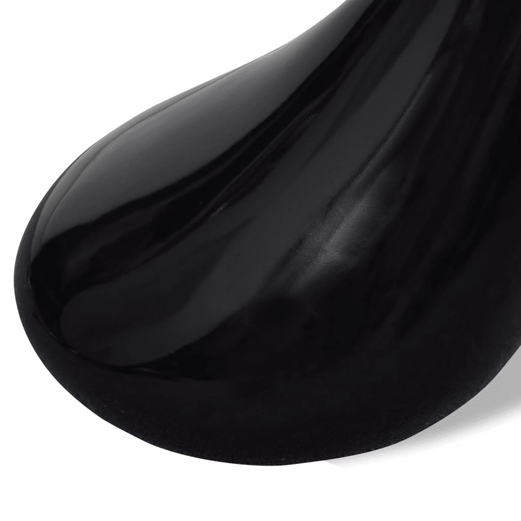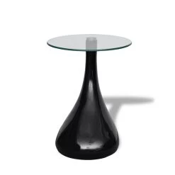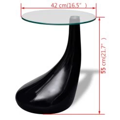 The unique water-drop shaped base in high-gloss black finish gives the table a chic look. It is great to go next to a couch or sofa in the living room, or be used as an end table in your bedroom for a convenient surface to hold your drinks or any other necessities you need close at hand. The table top is tempered for your safety.