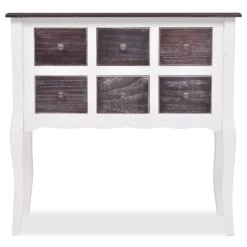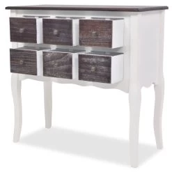 Easy to move and durable in construction, this valuable vintage artifact comes studded with a spacious storage space and ornamental drawer knobs.There are six drawers adjoined to the table top to hold your valuables. The drawers can be easily removed for cleaning. The sleek curved legs provide luster and classiness.