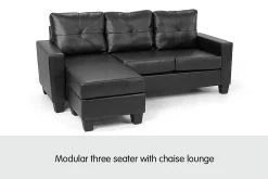 Upholstered in an easy-clean, high-grade, leather-look fabric with durable stitching, this 3 seater sofa with chaise gives you the luxury look.