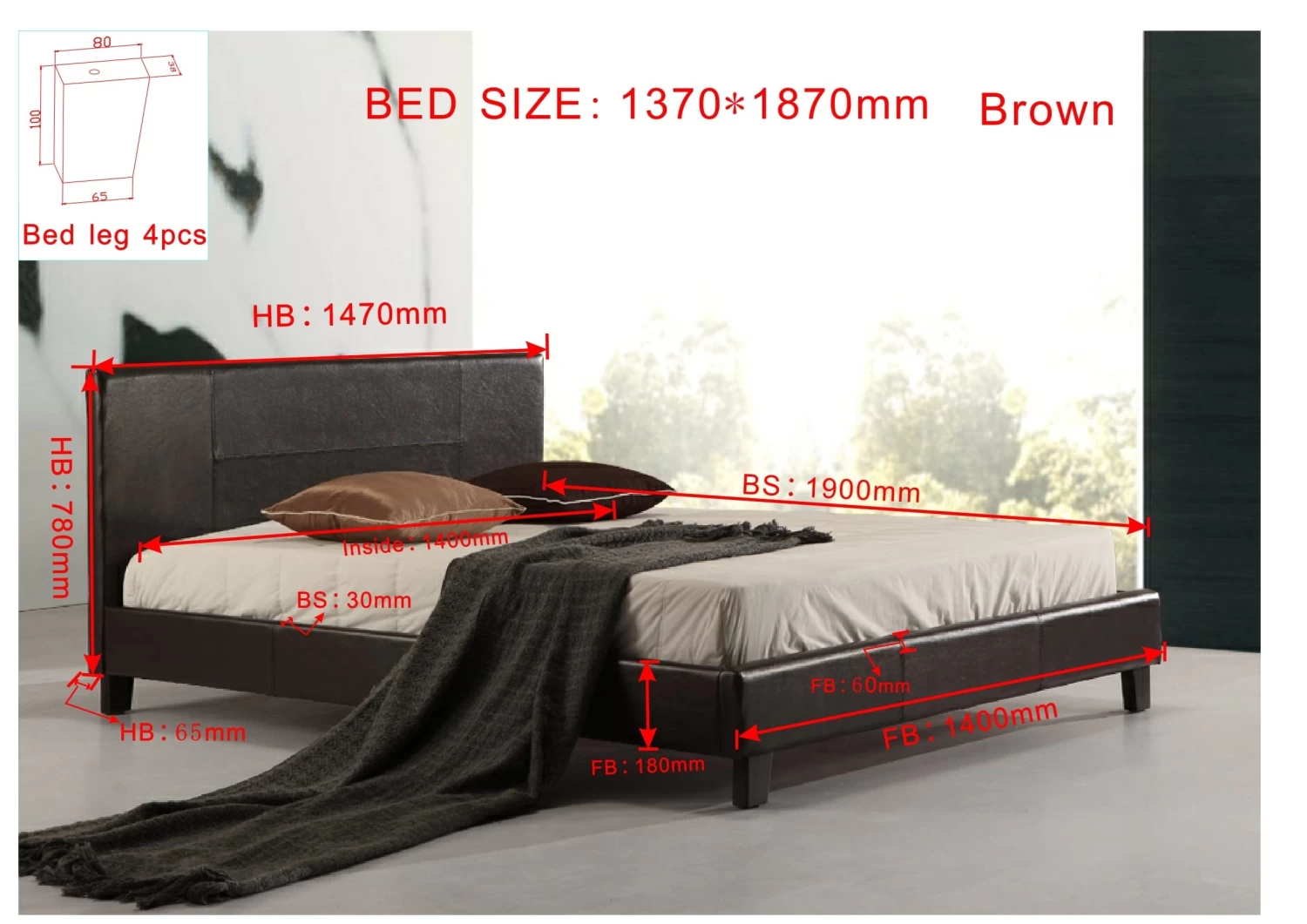 Features of the Palermo Double Bed Frame and Stitched Headboard — Brown: