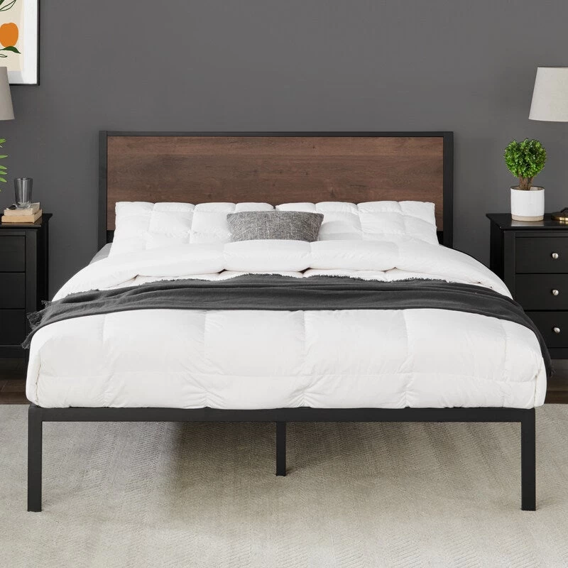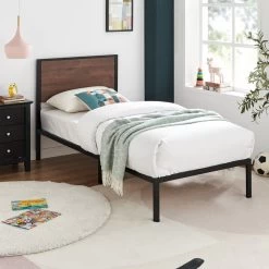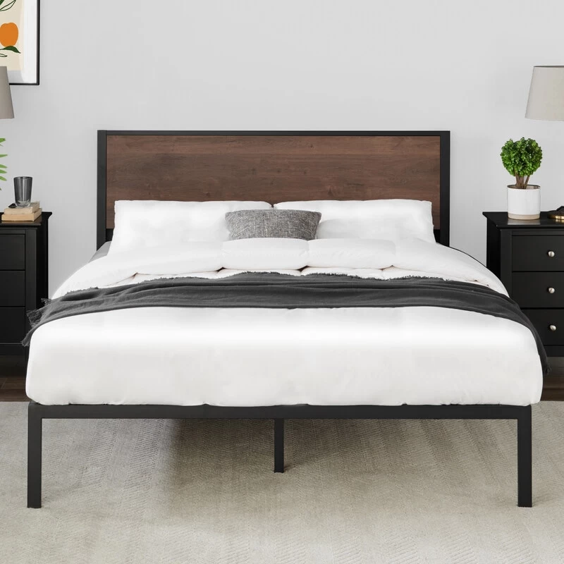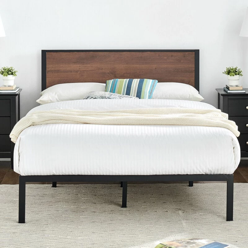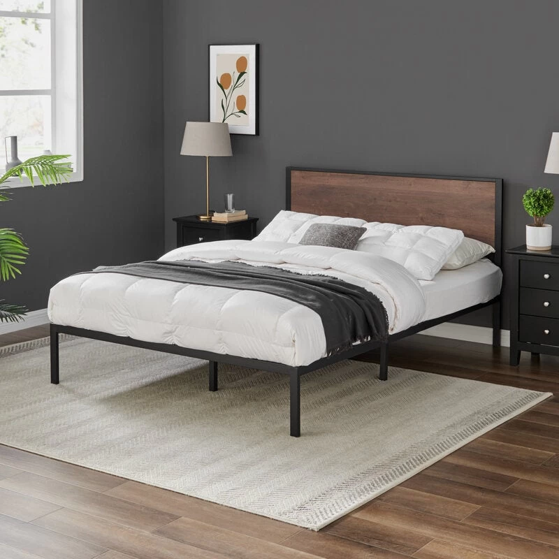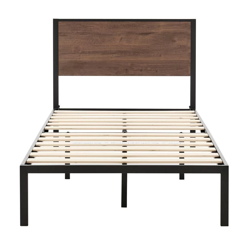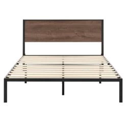 - Modern Styling – Created with you in mind, the bed frame has been designed to bring style to your bedroom now, and for years to come. Featuring an attached headboard and a rustic/industrial design, it suits just about any bedroom regardless of decor