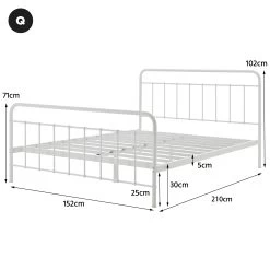 Sleep easy with a DukeLiving Charlie Metal Bed Frame White (Double, Queen). Featuring a sturdy and durable steel frame, headboard, and footboard, and a clean, minimalist design, it’s a perfect addition to any bedroom! With a 25cm clearance height, this bed makes room for ample storage under the bed, allowing your bedroom to shine. It even comes with a 5-year warranty, giving you peace of mind as you drift off to sleep.