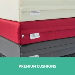 Flexibility. You can move the chairs around to create a whole new space. That’s like giving a new look to your backyard whenever or wherever you want. Not least, the set is completed with a matching dining table with a tempered glass top. And as a bonus, you’ll also receive all three red, grey and beige coloured seat covers at no extra cost. Three different coloured sofa sets for the price of one. Plus a water-resistant storage cover. Making sure it’s covered under any weather situation.And relax and chill on our Hayman 13-piece Dining Set for the rest of the day.