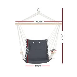 We want it to be a long lasting hammock at your home. Made of solid timber rail with quality polyester cotton, you can hang it at your backyard as a chilling spot for reading books or taKing a nap. Its durable strings can hold up to 120kg that would suit almost everyone – anyone can chill any time. Comes with a soft pillow and padded seat, it is a nice comfy spot to chill at with a book or just listening to songs. Designed with armrests that lets you rest on whenever you like. Very simple installation, you can take it with you to a barbecue or on a vacation. It can be attached to trees, ceilings or pergola beams.