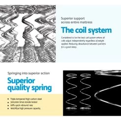 Outside, its pillow top and soft quilting top layer is an oasis of luxurious comfort. Lush and delightful, this top layer is guaranteed to make you feel good all over. Inside, the 5-zone bonnell springs offers targetted relief from head to toe while distributing your weight evenly throughout the mattress. The independent coil system also ensures undisturbed sleep from any movement from your partner.