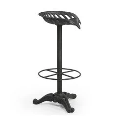 Our Cast Iron Hidey Ho Bar Stool is a bold industrial piece, It’s been sustainably fashioned with a re-purposed tractor seat base which gives it a modern take on a vintage look. This industrial piece will be a striking addition to bar and counter top areas. It features a round cast iron footrest and a solid tripod base.