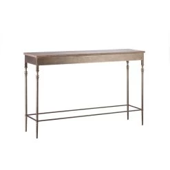 Add some style and elegance to your home with this timeless design that effortlessly blends rustic and urban with its wrought iron legs and smooth wood top. With a French Brass body and Wood finish this table fuses the two styles to create a table that will compliment any home.