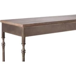 - Iron & Wood Console Hall Table w Finial Legs Brass