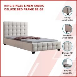 Features of the Palermo King Single Deluxe Bed Frame with Linen Fabric — Beige: