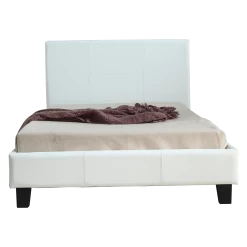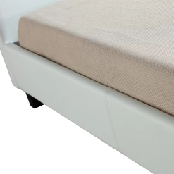 This bed from the expert craftspeople at Palermo measures 115 cm wide by 206 cm long, with a headboard that measures 88 cm tall (10cm leg & 78cm headboard) from top to bottom. It fits a king single mattress measuring 106 x 203 cm. The frame and headboard feature a durable PU Leather covering that’s easy to clean and that will look great for many years to come. The headboard is padded for comfort while sitting up and reading or watching TV. An attractive stitched-together look and clean, simple lines make this bed frame a perfect complement to the modern bedroom. And the white colour adds visual appeal without being ostentatious.