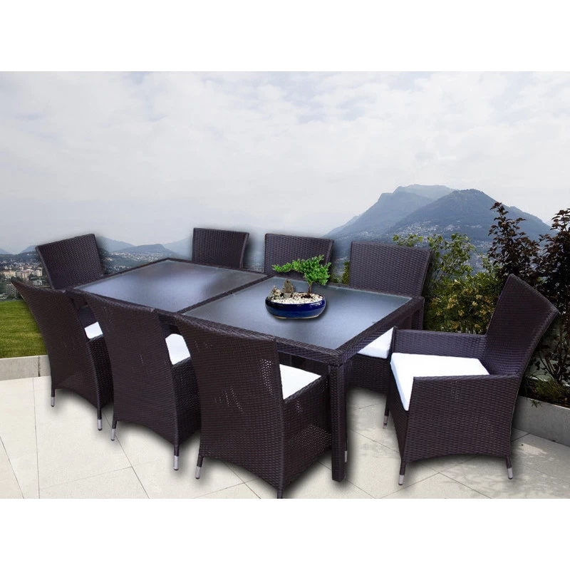 - Millana 8 Seat PE Wicker Outdoor Dining Set – Brown