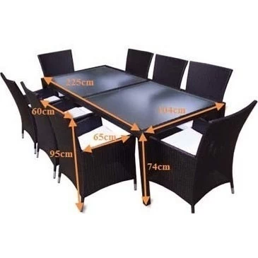 - Table: 225 (L) x 104 (W) x 74 (H) (cm)