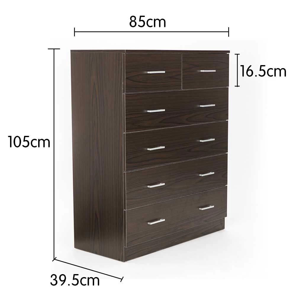 Made to last for long, high density particle boards and anti-rust coated metal drawer runners are used to built this piece. This chest also features a melamine coating, so cleaning off any marks is a quick and easy job.