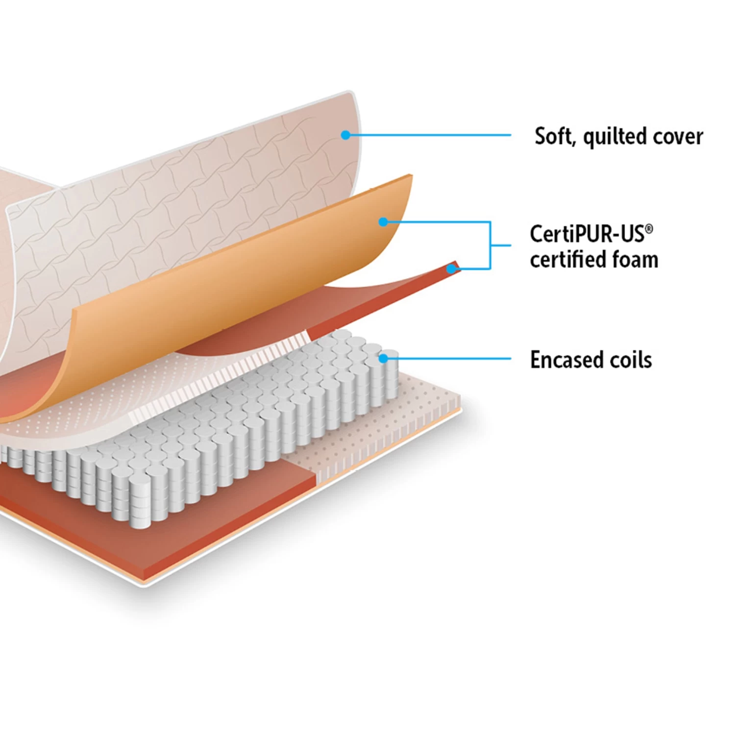 - A layer of foam quilted at the top and bottom of the mattress with gives you a comfortable embracing feel to minimize the feeling of the coils