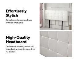 This headboard for standard Double-sized bed frames is created with quality materials, including easy-to-maintain PU leather that will maintain its sophisticated look for many years to come. This particular model comes with a stately, timeless tufted button pattern that never goes out of style. A neutral white will blend seamlessly with a wide variety of bed frames and other bedroom furniture.