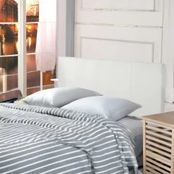 This headboard for standard Double-sized bed frames is created with quality materials, including easy-to-maintain PU leather that will maintain its sophisticated look for many years to come. This particular model comes with elegant stitching accents that provide just the right level of understated pop. A neutral white will blend seamlessly with a wide variety of bed frames and other bedroom furniture.