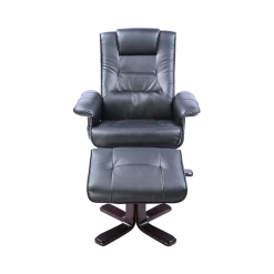 The massage recliner is made with comfortable PU Leather that’s easy to clean. Classic black will go with any decór. The wooden base of both the recliner and the footrest are equally attractive and modern in a curved cappuccino-coloured wood.