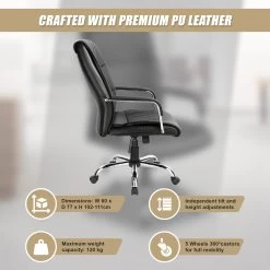 This office chair in all-black features quality craftsmanship that translates into durability and comfort. A premium PU leather has been chosen for its resilience and for its look and feel. This material is hassle-free; just wipe with a soft cloth to keep it looking fresh and new. And its classic design is sure to turn heads and impress clients.