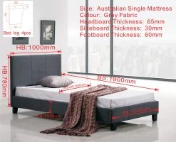 Give your bedroom a splash of color and complete your decor with our Palermo Single Bed Frame with Linen Fabric in grey. Designed for a standard Australian sized single mattress (mattress not included), this complete bed frame and headboard is a great addition to any bedroom.