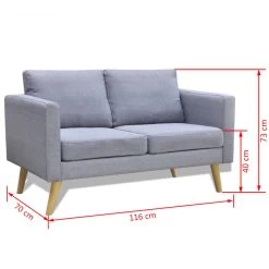 The sofa features a wide seating area and thickly padded cushions for the ultimate seating comfort. It is upholstered in high-quality fabric that is hardwearing. The cushion covers are easy to keep clean as they are removable and can be machine washed. The strong wooden frame contributes to the sturdy construction.
