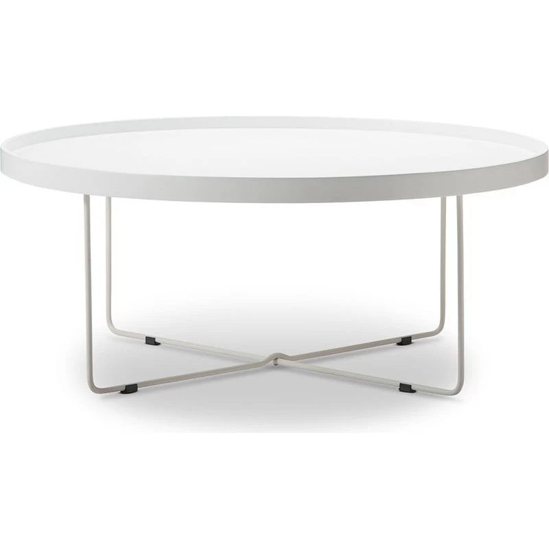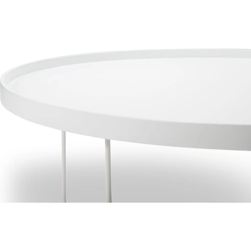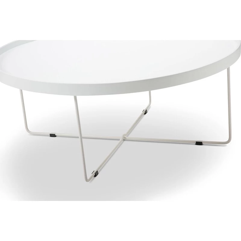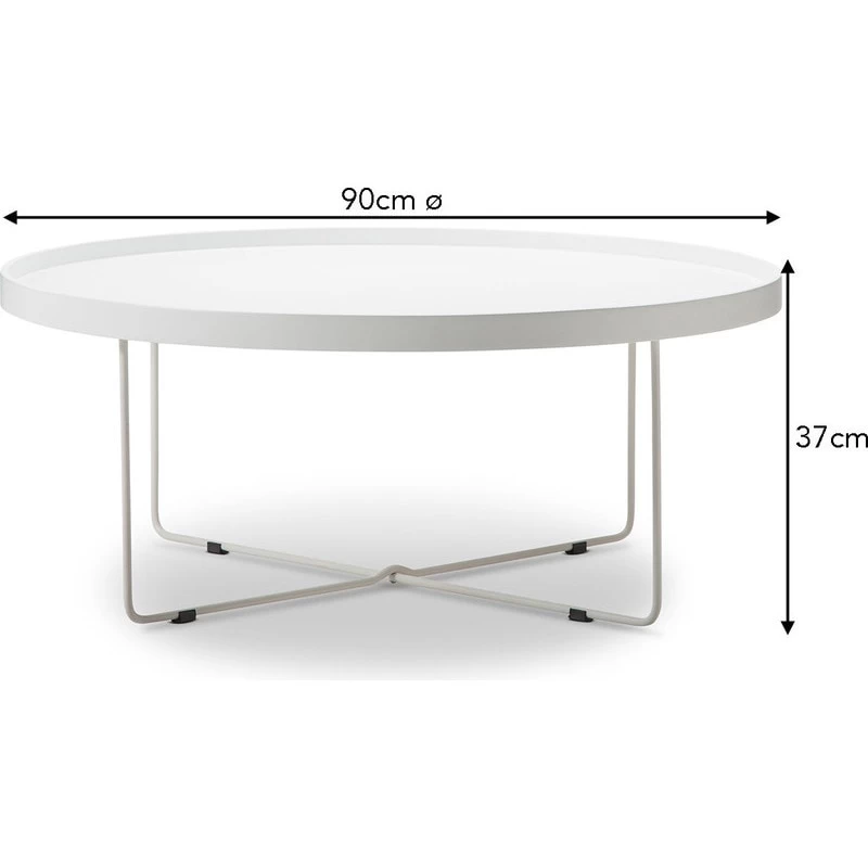 Grace your living areas with this round coffee table in white! Made in distinguished minimalist Scandinavian design, this coffee table complements most interiors while providing an unmistakable touch of style. It features a PU painted MDF top and bolted steel tubing legs for solid construction, as well as a spacious tray top!
