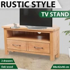 This TV cabinet is expertly crafted from durable solid oak and highly functional. It features a drawer with two compartments for knick-knacks and a shelf for media players or gaming consoles and surround sound systems.