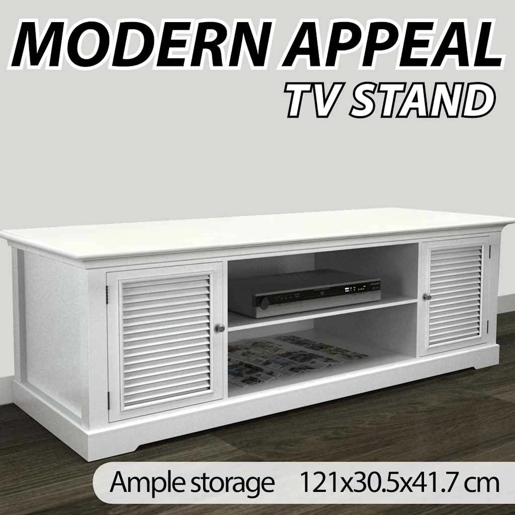 Made from sturdy MDF and pine wood, the TV stand holds up well to everyday wear and tear. The white paint finish makes it easy to clean with a damp cloth.