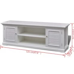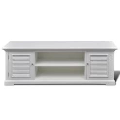 The TV console has four shelves with two doors, which provide out-of-sight storage for games, movies, music and other entertainment essentials. A further two shelves can accommodate different home entertainment systems, such as CD players, DVD players and DVR systems. The wide top surface of this TV cabinet makes it ideally suitable for showcasing a freestanding wide screen plasma or LCD television.