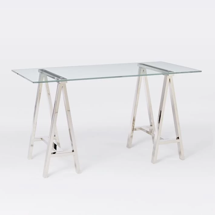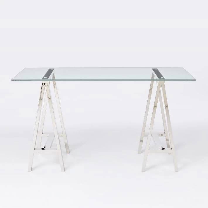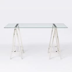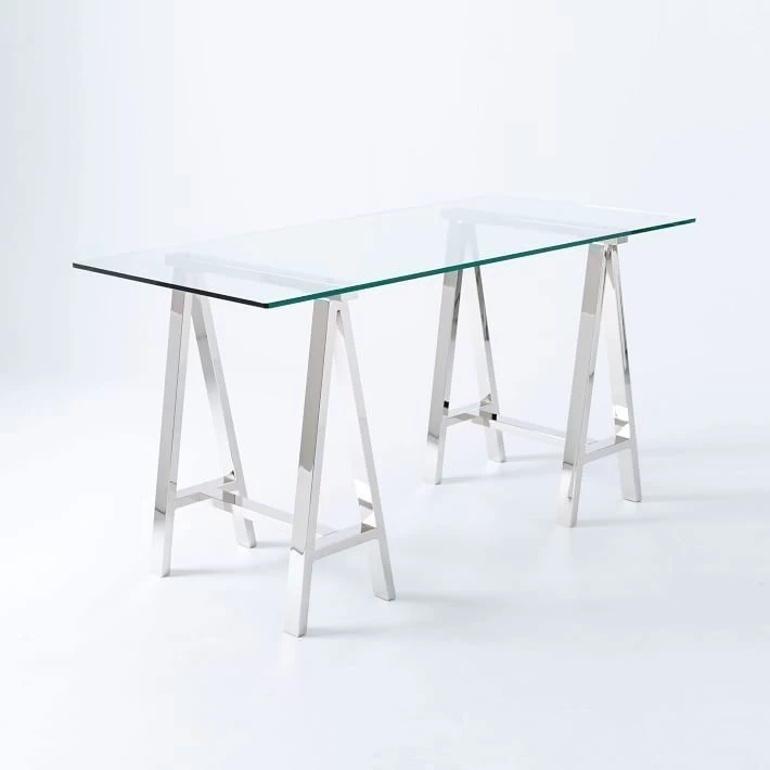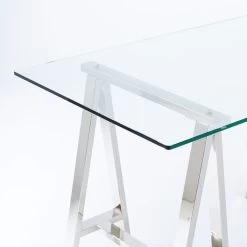 Complement any type of decor with this stainless steel and glass table. This table features a unique rectangular stainless steel design acting as the legs and a sleek glass top. Whether you decide to use this piece to accent any room or use it as an office table this particular table will prove to turn heads and act as the perfect addition to your current decor.