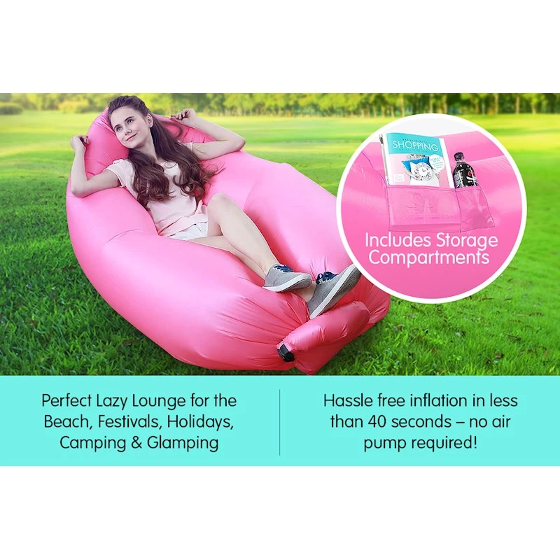 The inflation process is quick and simple. Just open the mouth and wave the air lounge around encouraging the 100% free air into it. Give the fastener a few twists and a clip it together and you are ready to hangout in style.